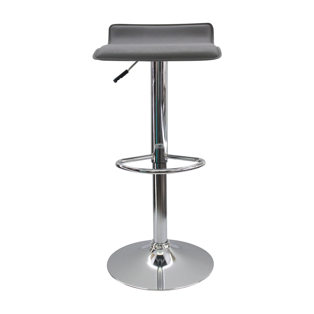 Su base es elaborada en acero cromado y su asiento es forrado en Eco cuero. Posee regulación de altura, además de apoyo para los pies, lo cual brinda calidad y confort.