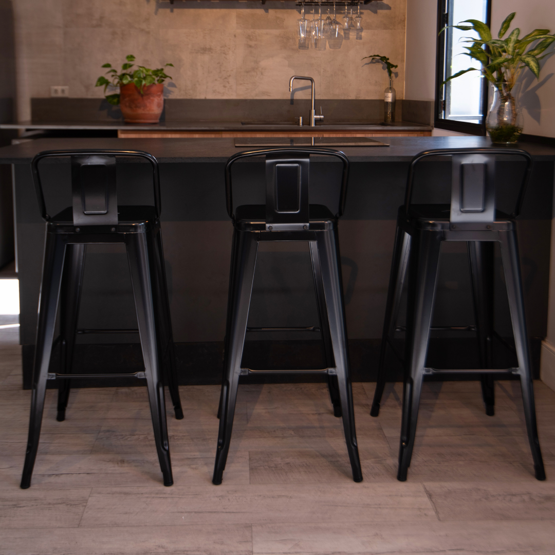 Set x 3 Butacos Bar Altos TITAN Tipo Tolix Negros BoxBit