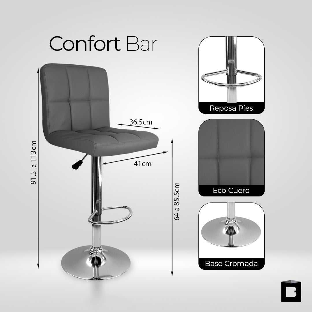 La Silla Tipo Bar Confort con espaldar combina diseño moderno, comodidad y funcionalidad, ideal para barras de cocina, islas o espacios sociales. Su asiento giratorio permite una rotación de 360°, brindando mayor practicidad y confort en el uso diario.