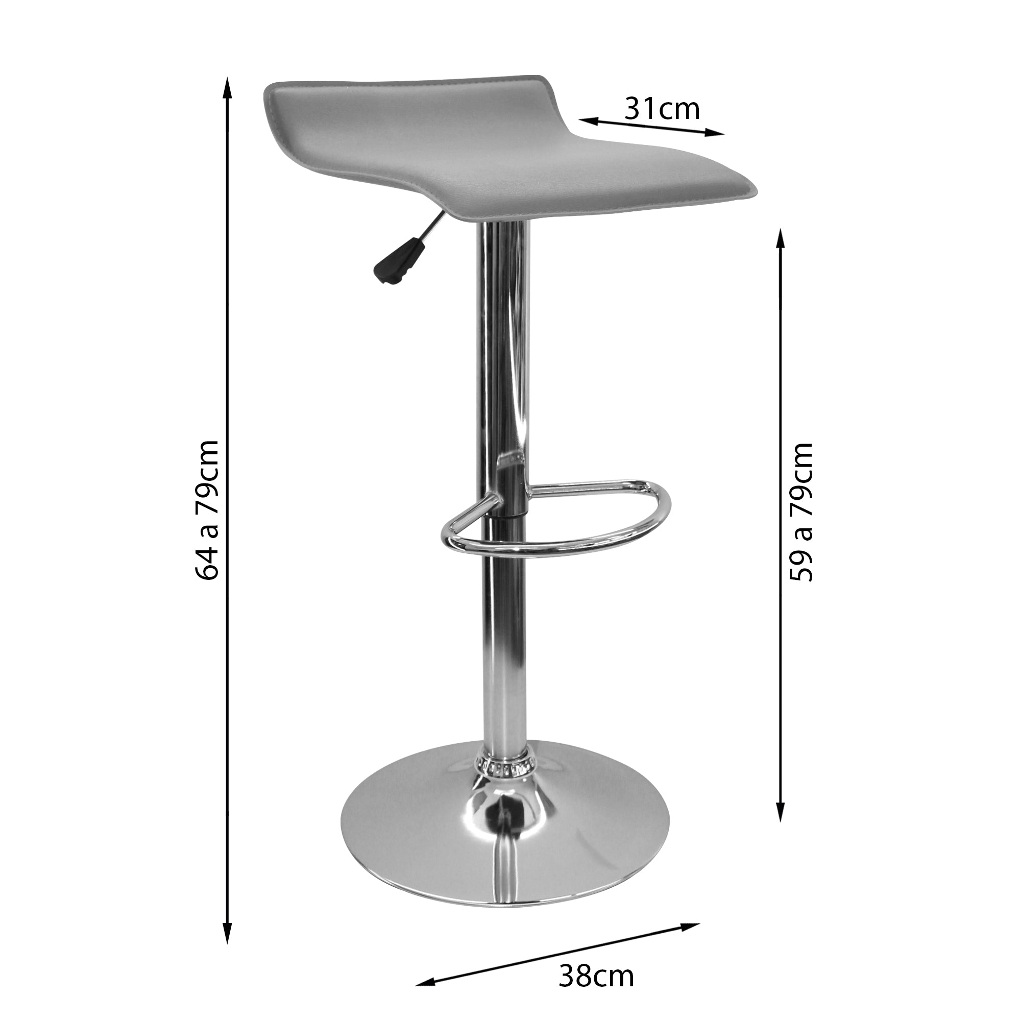 Cuenta con base en acero cromado, que brinda estabilidad y durabilidad, y un asiento tapizado en eco cuero, ofreciendo mayor comodidad. Además, posee regulación de altura y apoyo para los pies, lo que garantiza una experiencia cómoda y funcional para el uso diario.