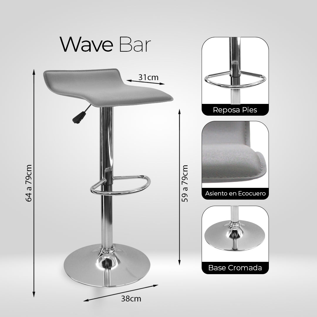 La silla tipo bar WAVE destaca por su diseño elegante, moderno e innovador, ideal para barras, cocinas tipo americana o espacios sociales. Su estilo contemporáneo aporta un toque sofisticado que se adapta fácilmente a diferentes ambientes.