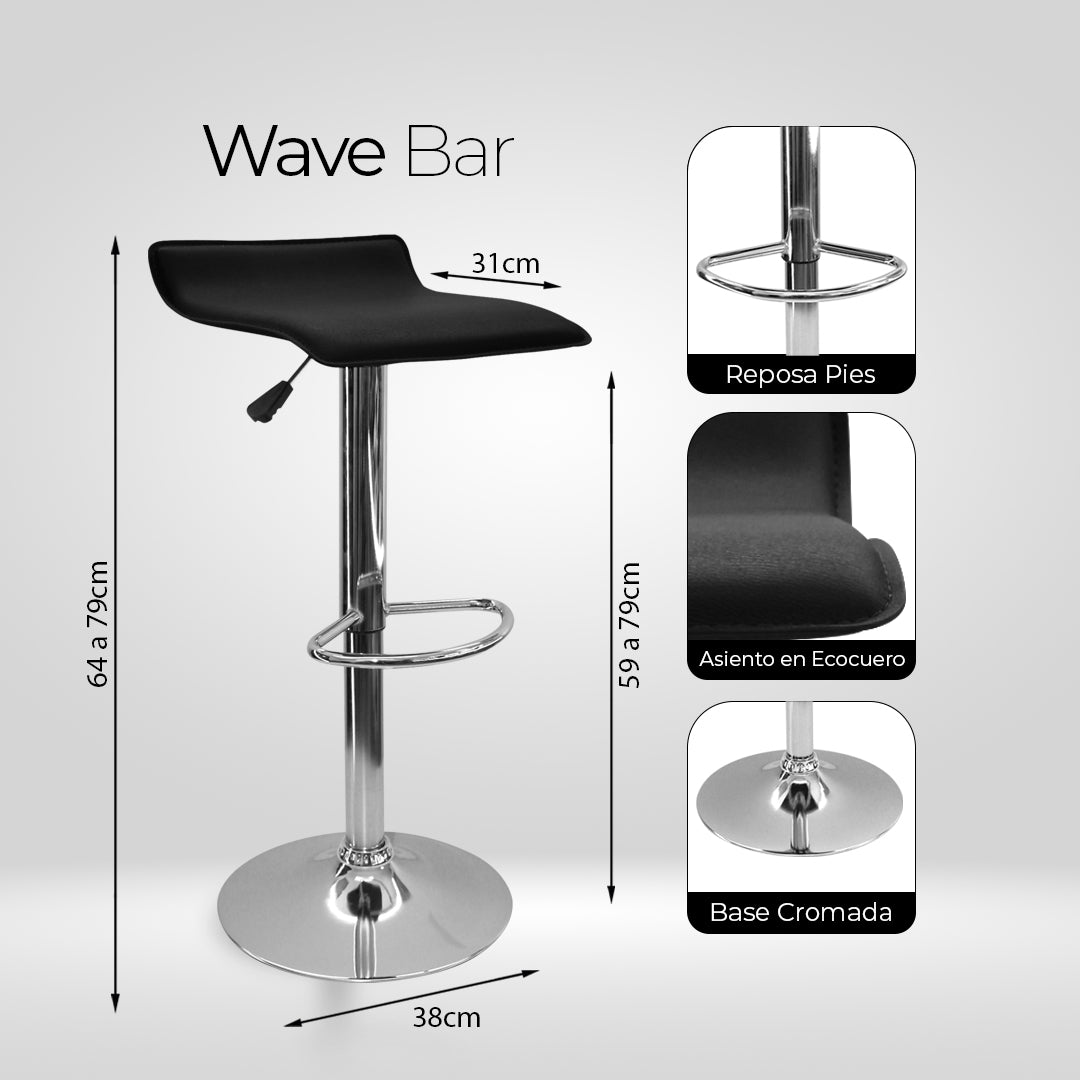 La silla tipo bar WAVE destaca por su diseño elegante, moderno e innovador, ideal para barras, cocinas tipo americana o espacios sociales. Su estilo contemporáneo aporta un toque sofisticado que se adapta fácilmente a diferentes ambientes.