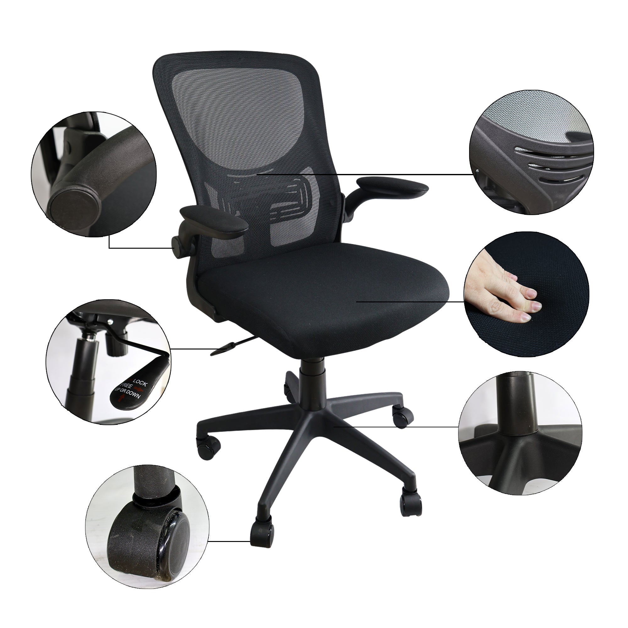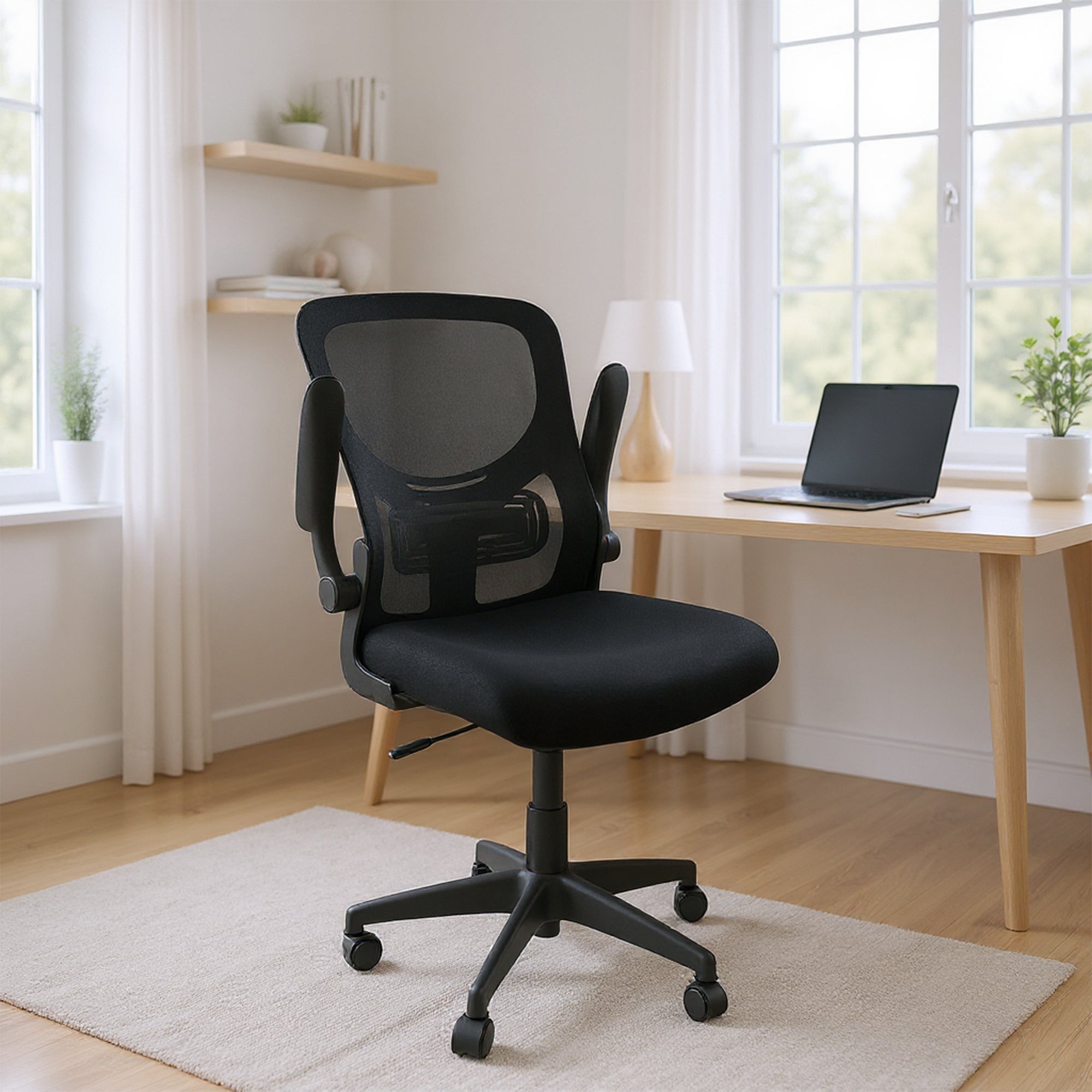 Mejora tu postura con la silla de oficina gerencial BOGOTA BAJA. Diseñada para ofrecer confort y estilo, cuenta con respaldo ergonómico, reclinable de 90° a 130°, y apoyabrazos ajustables con sistema abatible de 90°. Su asiento giratorio 360° y altura regulable mediante pistón neumático brindan flexibilidad total. El tapizado en tela microperforada transpirable asegura frescura. Fabricada en polipropileno de alta resistencia, con estrella y ruedas de nailon reforzado para un desplazamiento suave. Fácil de ensamblar.