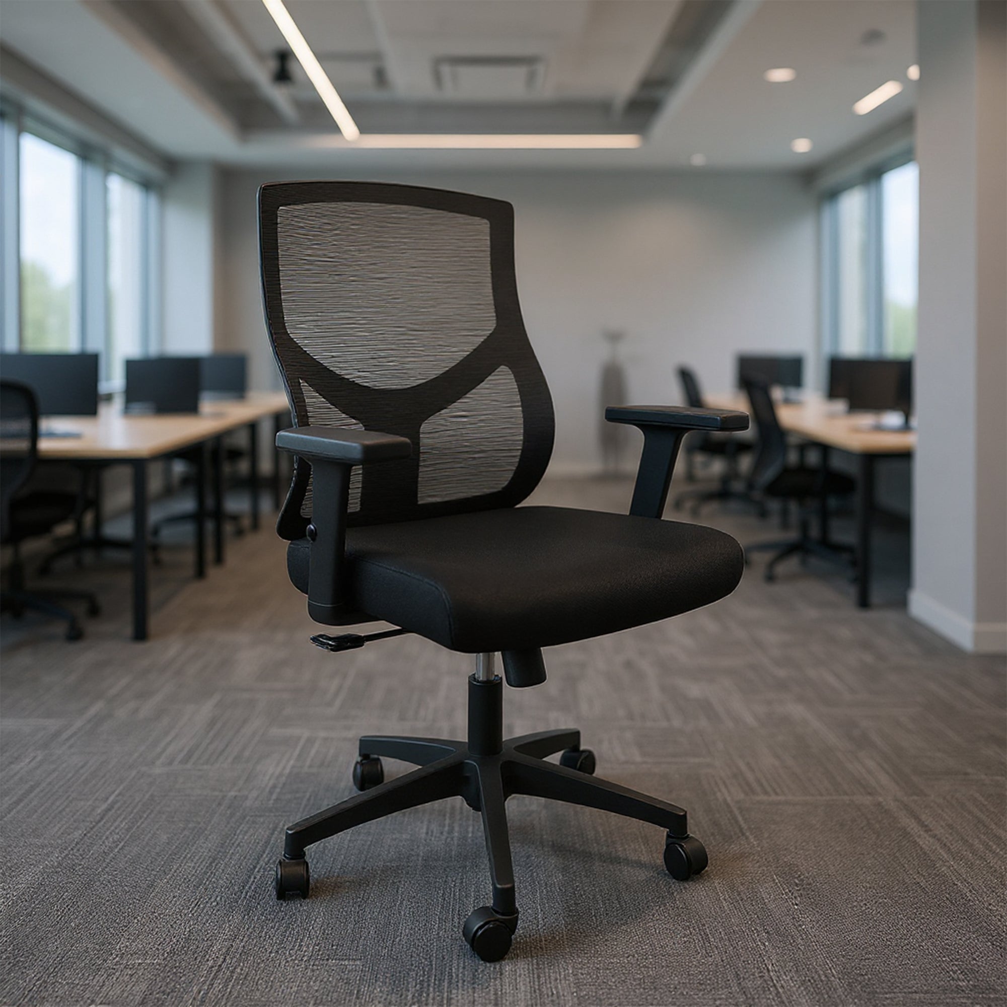 Mejora tu rendimiento con la silla de oficina TOQUIO, diseñada para ofrecer confort y soporte óptimo en entornos laborales. Cuenta con apoyabrazos ajustables en altura y un respaldo ergonómico tapizado en tela microperforada transpirable, ideal para largas jornadas. Su asiento acolchado con revestimiento de malla garantiza comodidad adicional. Con un sistema giratorio de 360°, reclinación basculante y altura regulable mediante pistón neumático, esta silla te ofrece flexibilidad total. Fabricada en polipropileno de alta resistencia, tanto en la estructura como en las ruedas, es duradera y resistente. Fácil de ensamblar en 30 minutos. ¡Perfecta para cualquier oficina moderna!