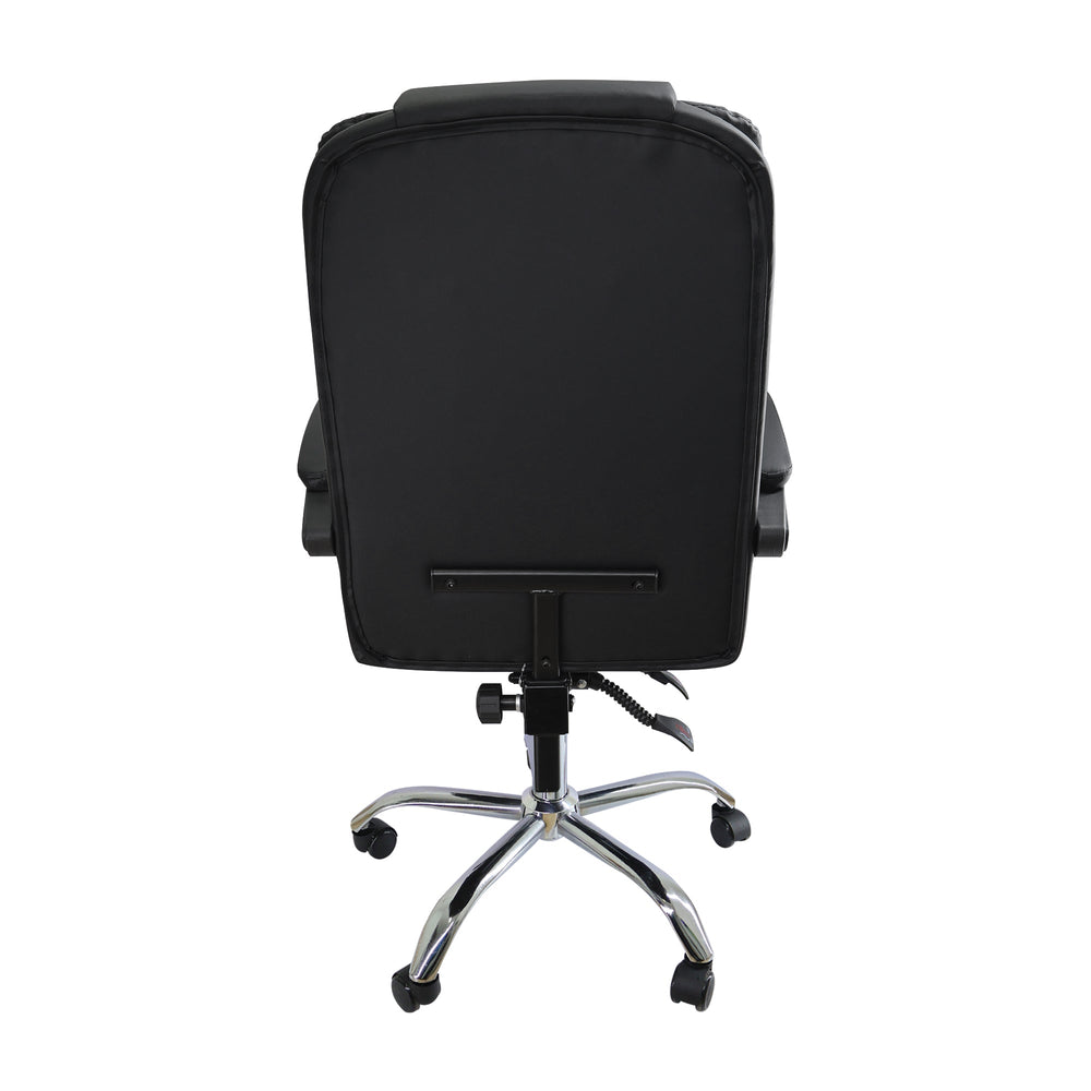 La silla Jacarta combina comodidad y funcionalidad para largas sesiones de uso. Con un diseño ergonómico y un tapizado en ecocuero, esta silla incluye apoyabrazos acolchados que se ajustan al reclinar el respaldo hasta 145°. La base de metal cromado y las ruedas de nailon reforzado ofrecen durabilidad y movilidad suave. Además, cuenta con un sistema de reclinación independiente y un soporte lumbar fijo, ideal para oficinas gerenciales. Soporta hasta 110 kg y requiere ensamblado con un nivel de dificultad medio.