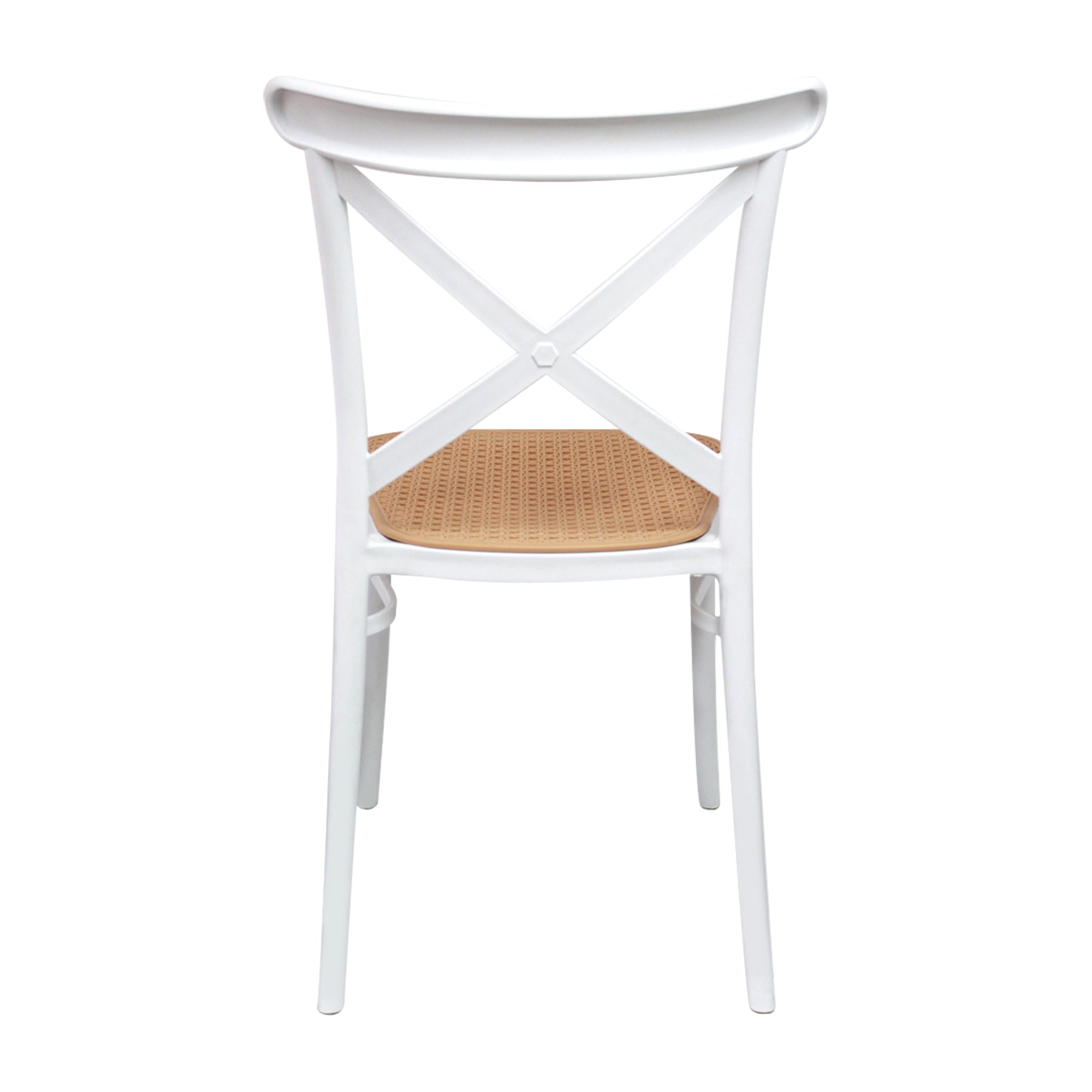 Silla PLATS, tiene un estilo Ratán, clásico, su diseño es moderno e innovador, su estructura está hecha en polipropileno inyectado, su espaldar y asiento están hechos en ratán sintético como simulando de paja hexagonal. Tiene protección con filtro UV para preservarla de la luz y el agua, de esta manera, podrás ubicarla en el lugar de tu preferencia, ya que es apta para interiores y exteriores.