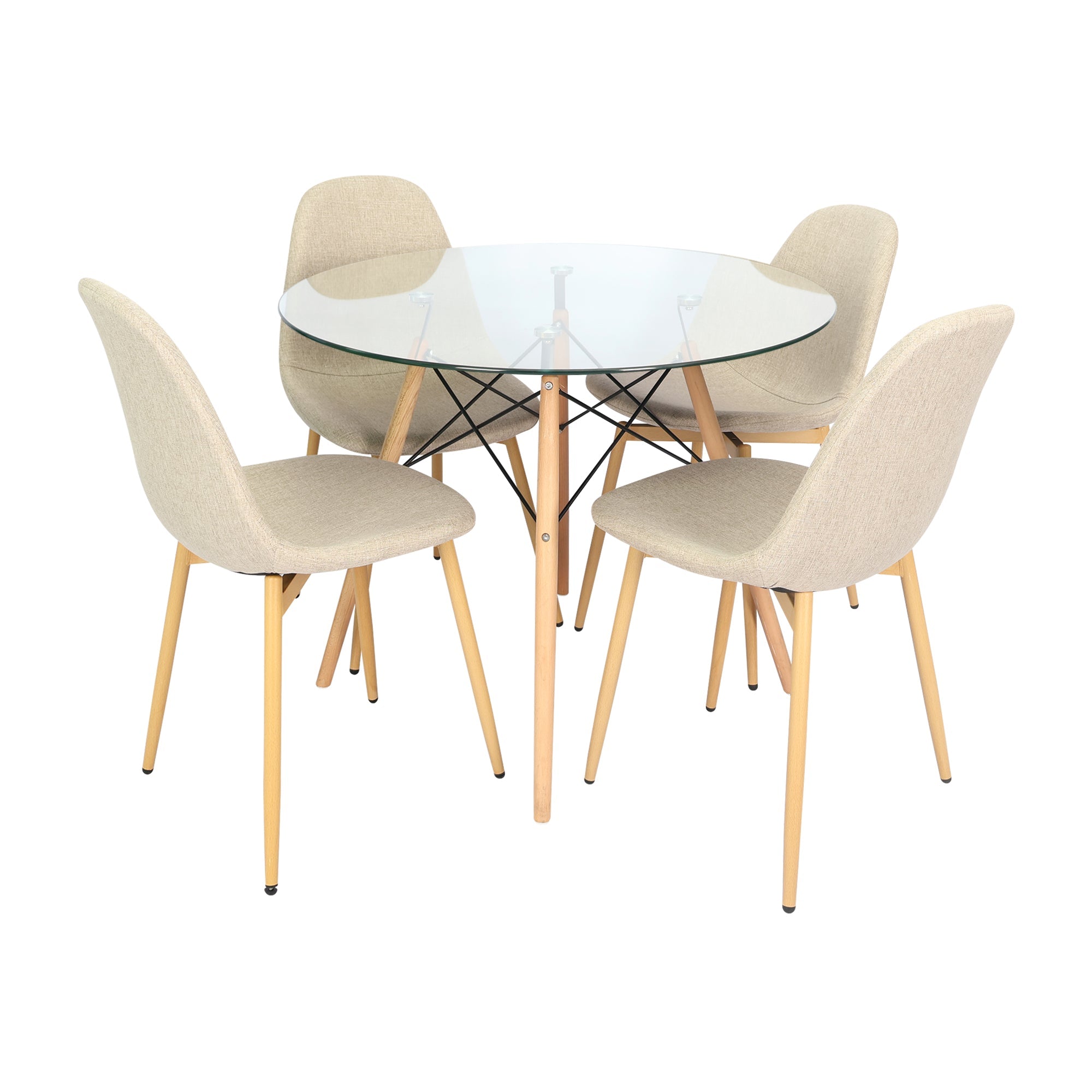 Comedor Redondo Tapa vidrio más 4 sillas Charla.