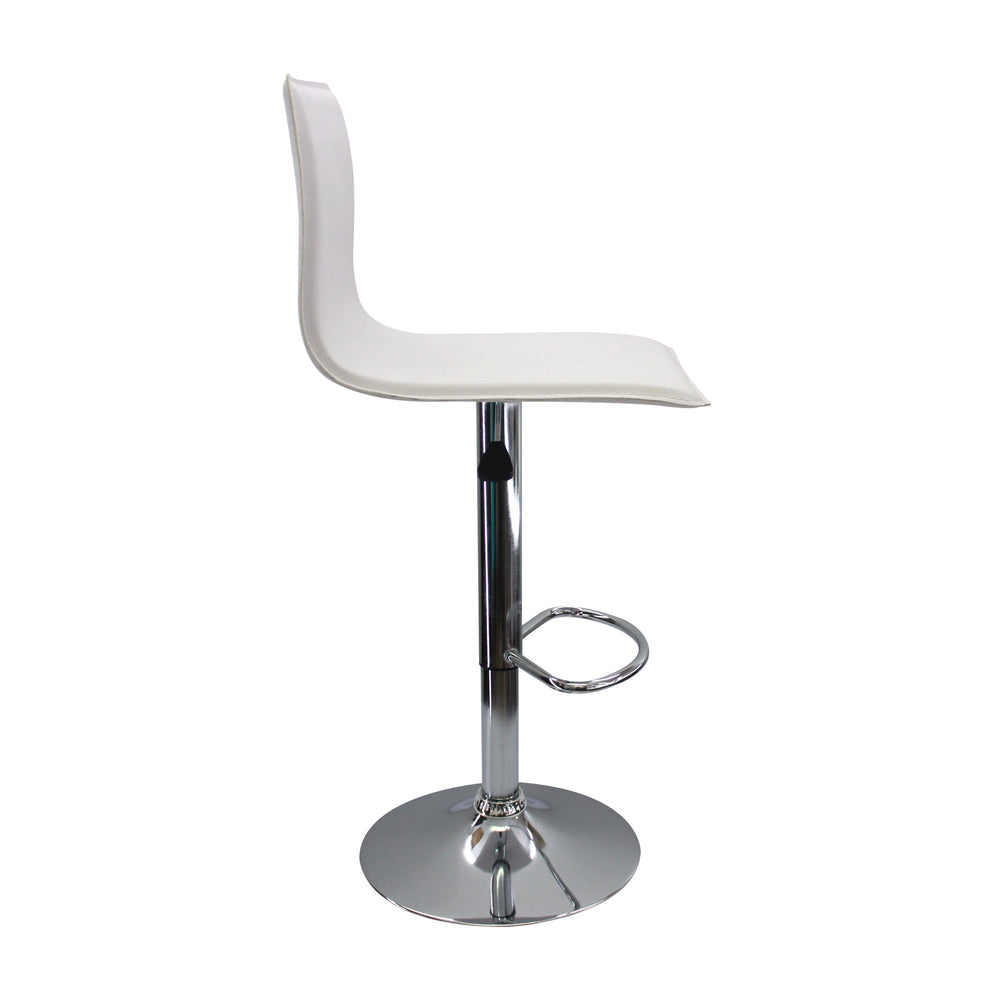 Su base es elaborada en acero cromado y su asiento es forrado en Eco cuero. Posee regulación de altura, además de apoyo para los pies, lo cual brinda calidad y confort.