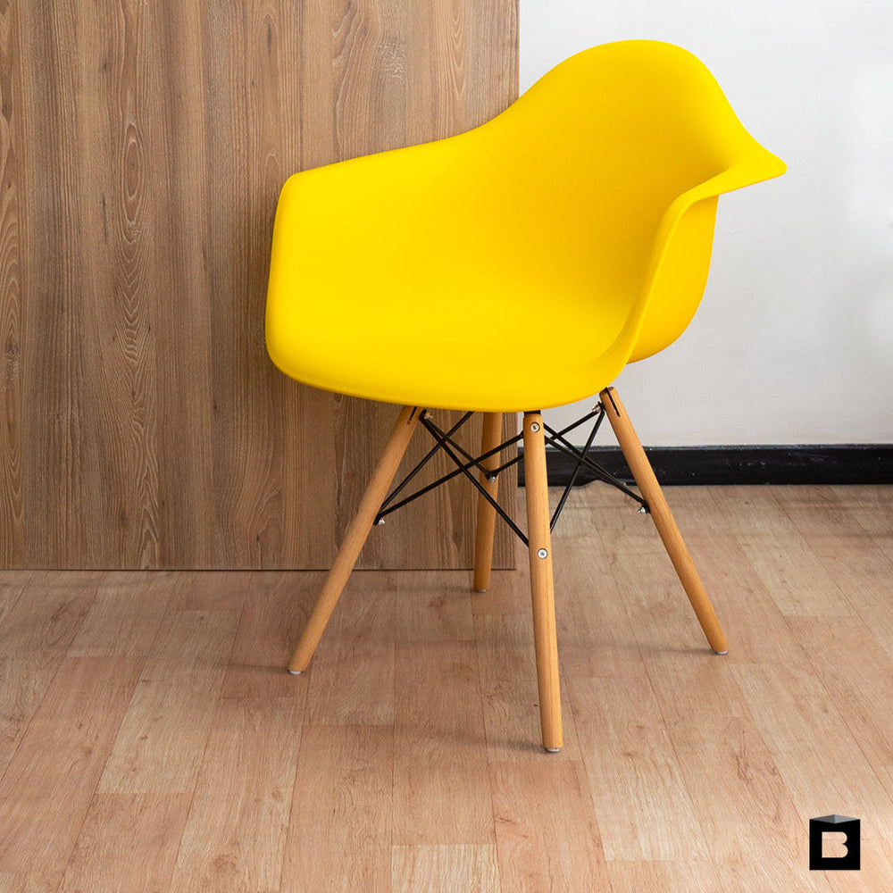 Set x 2 Sillas para Comedor DKR con Brazos Color AmarilloLa silla DKR con Brazos ofrece un diseño Moderno Elegante Inspirada en la famosa silla de Charles DKR con Brazos DSW. La DKR con Brazos de brazos DSW es una silla contemporánea y permanece en la era del tiempo, gracias a su respaldo, brazos y su asiento polipropileno. Su base de madera con refuerzo adicional en el interior de acero, a parte de sus varillas metálicas lacadas en negro; le dan este diseño original. Esta silla de diseño combinara en toda sencillez con su mobiliario.Disponemos de 5 colores para entrega inmediata¡Anímate a elegir el color que más te guste!¡Detente, Compara y Compra!MEDIDAS:• Altura: 82 cm• Altura del asiento: 45 cm• Altura de los brazos: 67 cm• Ancho: 62 cm• Profundidad: 44 cm• Unides por Set: 2 UnidadesGARANTIA:Garantía: 12 mesesEl producto debe estar en las condiciones que se recibió, con su empaque original, con las etiquetas, sellos de seguridad, y contar con todas sus partes y/o accesorios. Sin rayones ni manchas, sin evidencias de manipulación o uso, se recibirá únicamente en óptimas condiciones.Para defectos de fábrica o retractos: Por favor revise el producto apenas lo reciba y antes de usarlo. No aplican ley de retracto o defectos de fábrica luego de usar el producto. Se manejan máximo 5 días para reportar defectos de fábrica (por ejemplo, producto funciona mal, piezas faltantes, rotas, etc.). Para hacer efectiva la devolución el producto debe devolverse con el empaque original, el cual debe estar en buen estado, incluir todos los documentos y las partes completas y sin daños.TENER PRESENTE:- La garantía no cubre el mal uso del producto-Puede haber alguna diferencia de tono entre la imagen y el producto real, debido al tratamiento de la imagen y la calibración del color de su monitor.Recomendaciones de limpiezaIMPORTANTE:Limpiar la silla regularmente con un trapo húmedo para mantenerla libre de polvo o mugre en general, no usar esponjillas, detergentes, solventes, hipoclorito o sustancias que puedan deteriorar la silla.no se siente en los brazos o el espaldar de la silla.Uso interior, o exterior cubierto.Peso máximo soportado 110 kilos