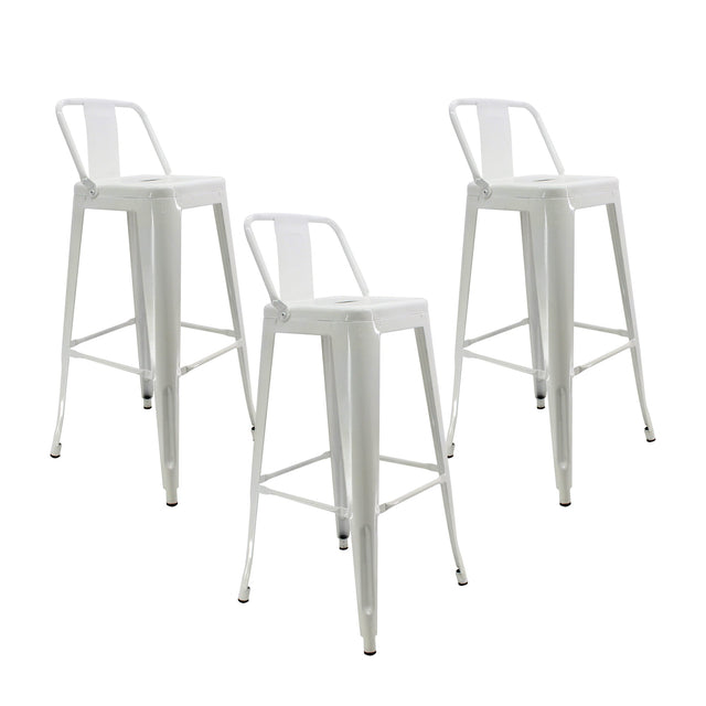 Set x 3 Butacos Altos TITAN Tipo bar Blancos. Tienen un clásico diseño en cuerpo metálico, estas sillas tienen variedad de colores, son elegantes y modernas, por lo tanto, son perfectas para usar en tus espacios como, hogares, restaurantes y bares, brindándote comodidad y calidad. El producto viene con espaldar y su uso es opcional. El tono del color puede cambiar en cada producto, es decir, que el de la fotografía es una aproximación al color real. MedidasAltura: Suelo a espaldar 96cm Altura: Suelo a asiento 77cm Ancho: Frente 45cm Largo: Lateral 45cmPeso: Máximo 110Kg GARANTIA:Garantía: 12 mesesEl producto debe estar en las condiciones que se recibió, con su empaque original, con las etiquetas, sellos de seguridad, y contar con todas sus partes y/o accesorios. Sin rayones ni manchas, sin evidencias de manipulación o uso, se recibirá únicamente en óptimas condiciones.Para defectos de fábrica o retractos: Por favor revise el producto apenas lo reciba y antes de usarlo. No aplican ley de retracto o defectos de fábrica luego de usar el producto. Se manejan máximo 5 días para reportar defectos de fábrica (por ejemplo, producto funciona mal, piezas faltantes, rotas, etc.). Para hacer efectiva la devolución el producto debe devolverse con el empaque original, el cual debe estar en buen estado, incluir todos los documentos y las partes completas y sin daños.TENER PRESENTE:- La garantía no cubre el mal uso del producto-Puede haber alguna diferencia de tono entre la imagen y el producto real, debido al tratamiento de la imagen y la calibración del color de su monitor.Recomendaciones de limpiezaIMPORTANTE:Limpiar la silla regularmente con un trapo húmedo para mantenerla libre de polvo o mugre en general, no usar esponjillas, detergentes, solventes, hipoclorito o sustancias que puedan deteriorar la silla.no se siente en los brazos o el espaldar de la silla.Uso interior, no exterior.Peso máximo soportado 100 kilosRecuerda que por ser una pieza de ensamble se debe de hacer un ajuste periódicamente.