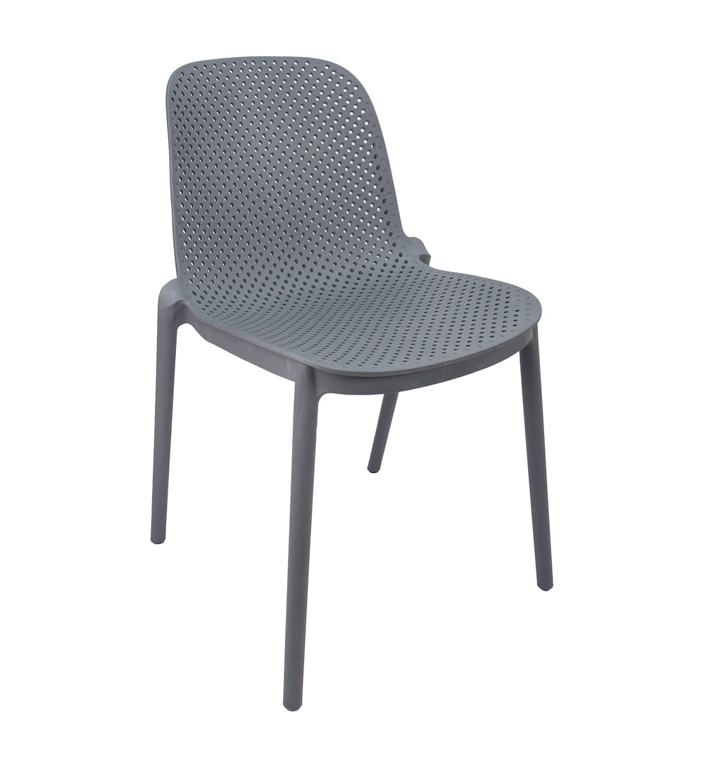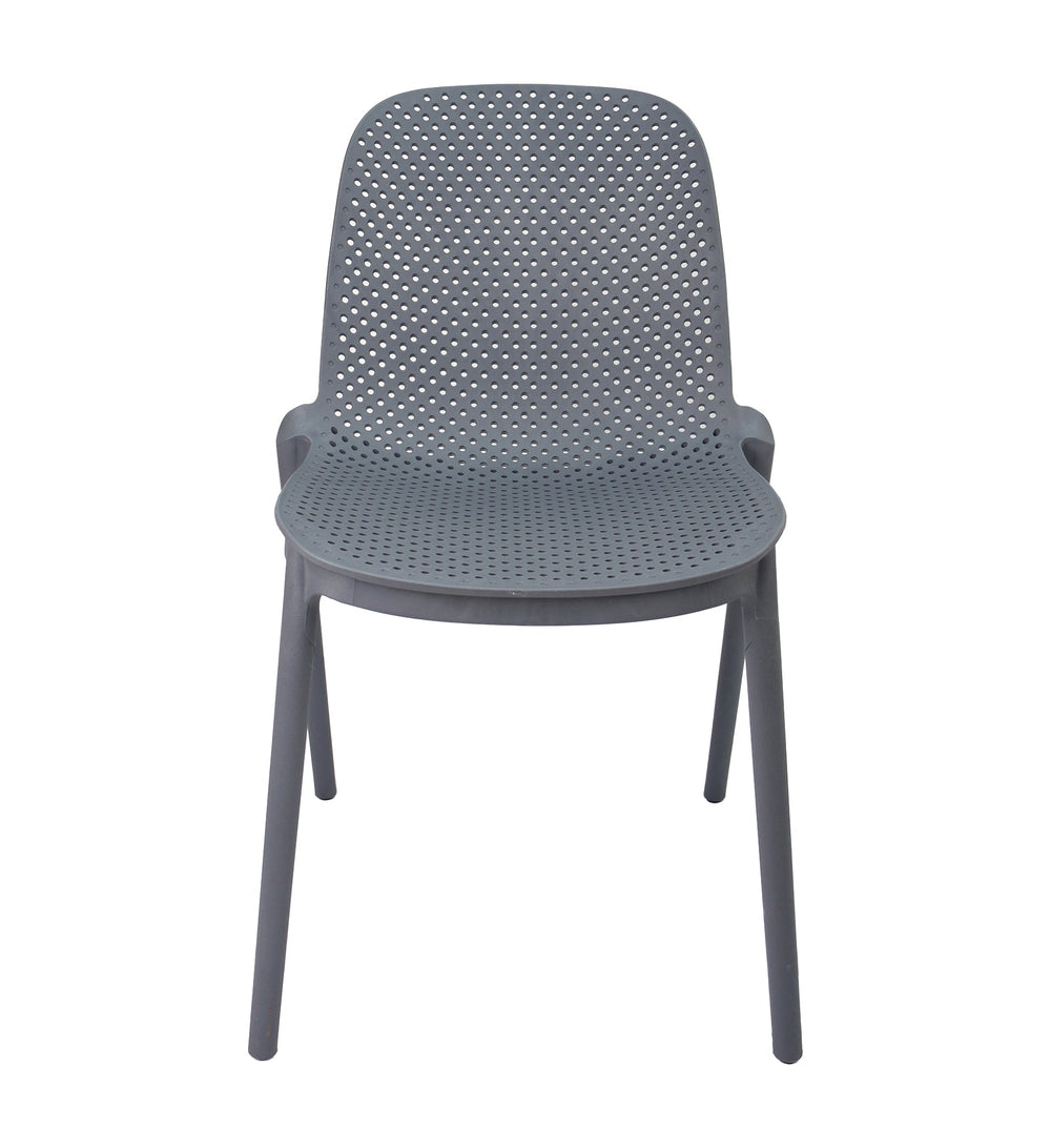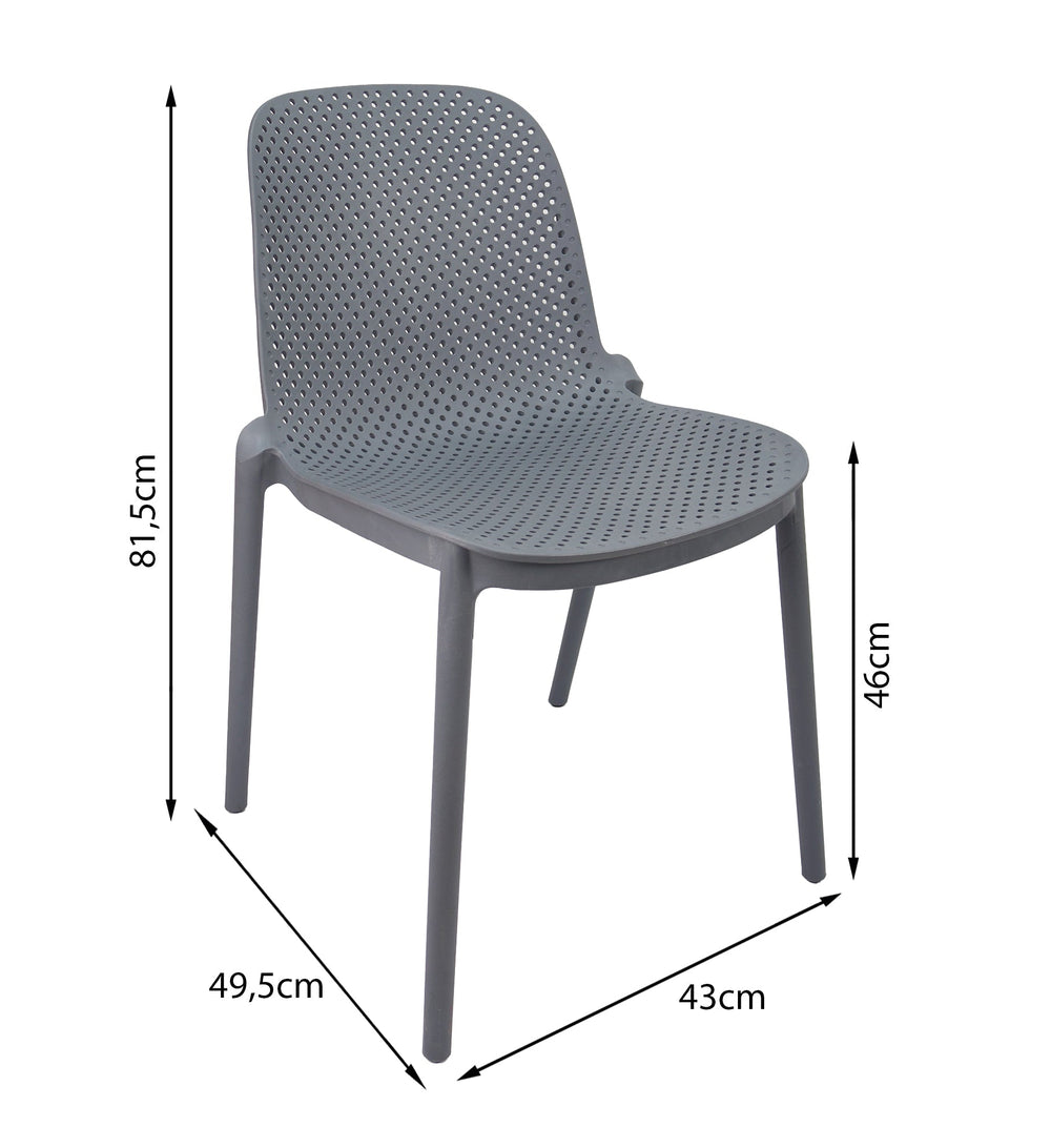 Silla fabricada en polipropileno (plástico) inyectado con gas nitrógeno, lo que garantiza alta resistencia y durabilidad. Apilable hasta 4 unidades, con tapones antideslizantes para mayor estabilidad. Protección UV que la hace apta para interior y exterior. Soporta hasta 180 kg. Ideal para espacios reducidos y fácil de combinar con distintos estilos de decoración.