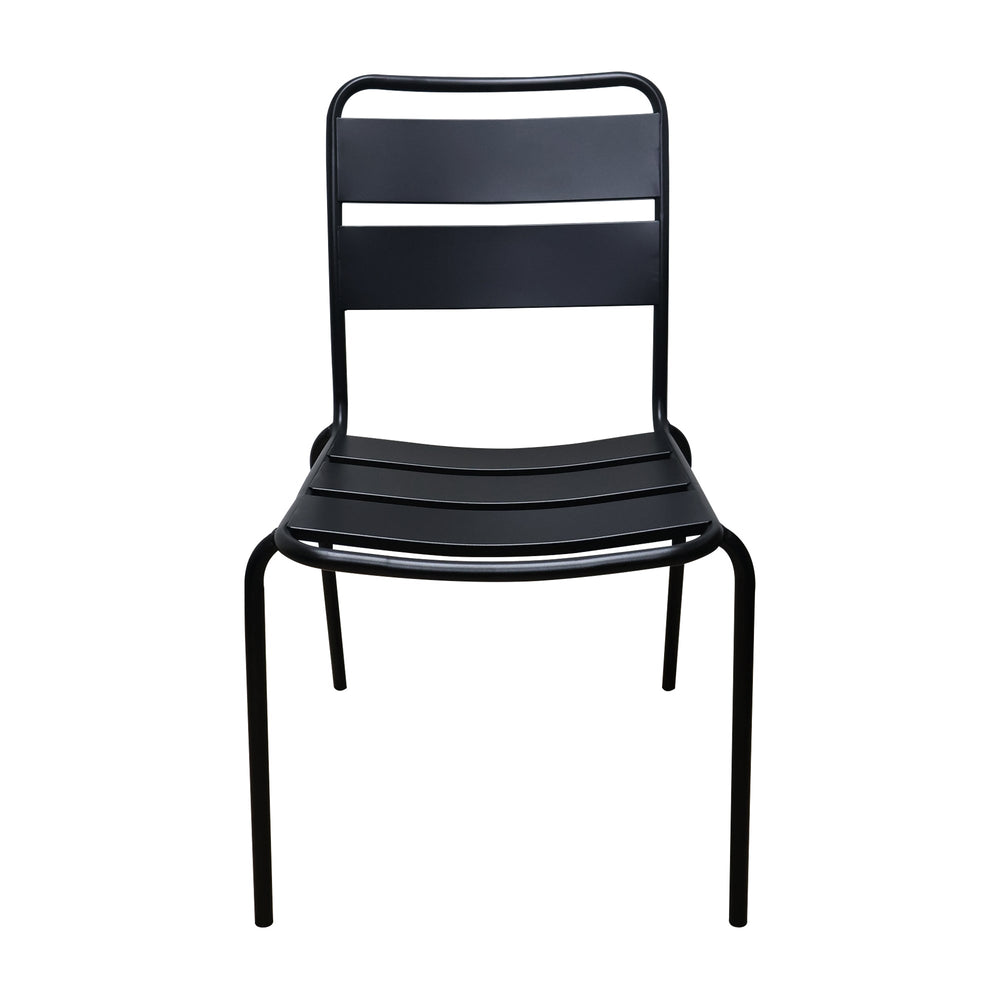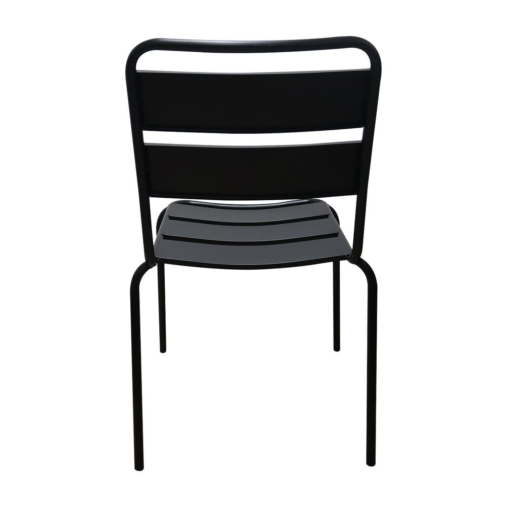 Silla con estructura de hierro, su acabado se obtiene con pintura epoxi, cuenta con protección UV y UVA, ideal para zonas exteriores. Esta silla es apilable.
