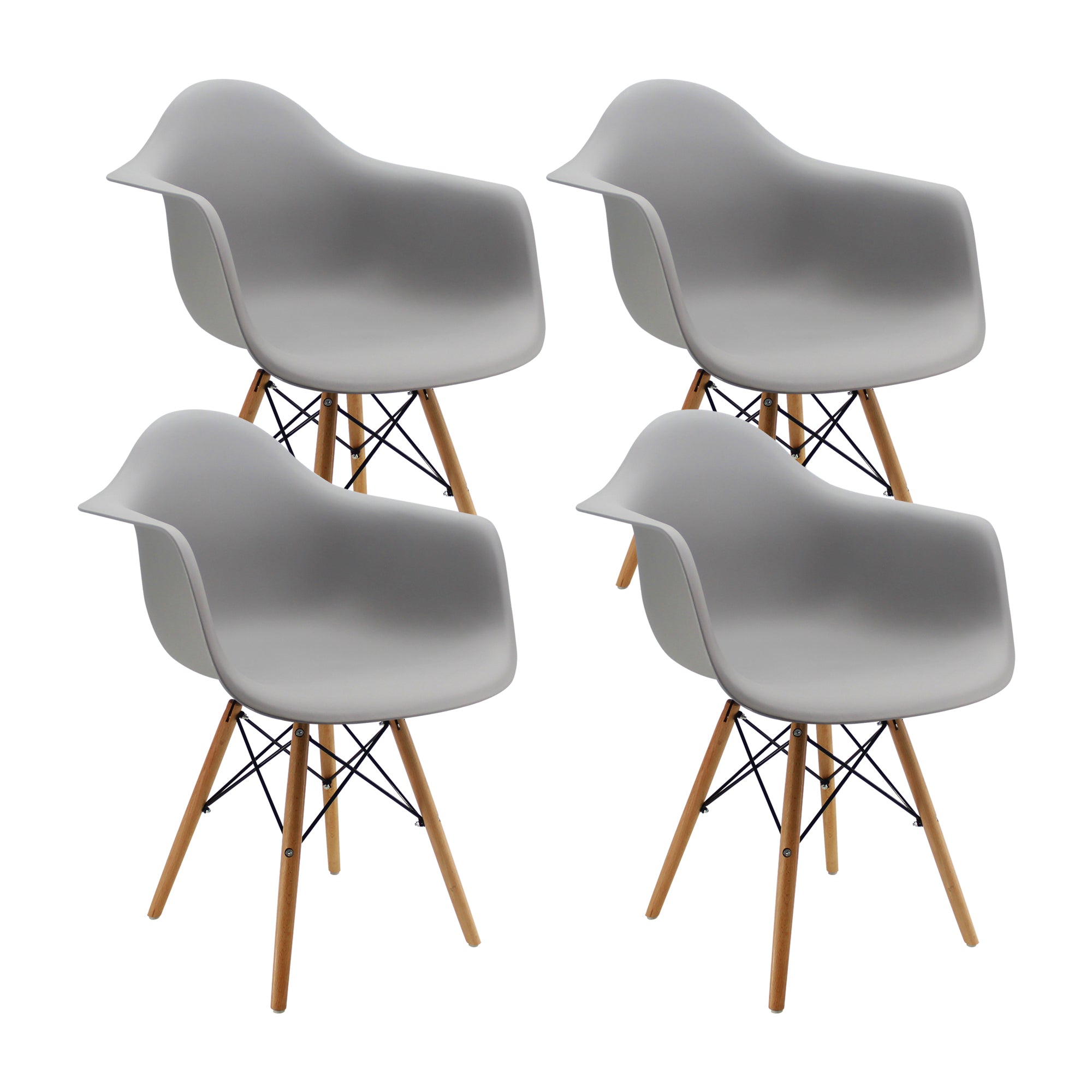 Set x 4 Sillas para Comedor DKR con Brazos Color GrisLa silla DKR con Brazos ofrece un diseño Moderno Elegante Inspirada en la famosa silla de Charles DKR con Brazos DSW. La DKR con Brazos de brazos DSW es una silla contemporánea y permanece en la era del tiempo, gracias a su respaldo, brazos y su asiento polipropileno. Su base de madera con refuerzo adicional en el interior de acero, a parte de sus varillas metálicas lacadas en negro; le dan este diseño original. Esta silla de diseño combinara en toda sencillez con su mobiliario.Disponemos de 5 colores para entrega inmediata¡Anímate a elegir el color que más te guste!¡Detente, Compara y Compra!MEDIDAS:• Altura: 82 cm• Altura del asiento: 45 cm• Altura de los brazos: 67 cm• Ancho: 62 cm• Profundidad: 44 cm• Unides por Set: 4 UnidadesGARANTIA:Garantía: 12 mesesEl producto debe estar en las condiciones que se recibió, con su empaque original, con las etiquetas, sellos de seguridad, y contar con todas sus partes y/o accesorios. Sin rayones ni manchas, sin evidencias de manipulación o uso, se recibirá únicamente en óptimas condiciones.Para defectos de fábrica o retractos: Por favor revise el producto apenas lo reciba y antes de usarlo. No aplican ley de retracto o defectos de fábrica luego de usar el producto. Se manejan máximo 5 días para reportar defectos de fábrica (por ejemplo, producto funciona mal, piezas faltantes, rotas, etc.). Para hacer efectiva la devolución el producto debe devolverse con el empaque original, el cual debe estar en buen estado, incluir todos los documentos y las partes completas y sin daños.TENER PRESENTE:- La garantía no cubre el mal uso del producto-Puede haber alguna diferencia de tono entre la imagen y el producto real, debido al tratamiento de la imagen y la calibración del color de su monitor.Recomendaciones de limpiezaIMPORTANTE:Limpiar la silla regularmente con un trapo húmedo para mantenerla libre de polvo o mugre en general, no usar esponjillas, detergentes, solventes, hipoclorito o sustancias que puedan deteriorar la silla.no se siente en los brazos o el espaldar de la silla.Uso interior, o exterior cubierto.Peso máximo soportado 110 kilos