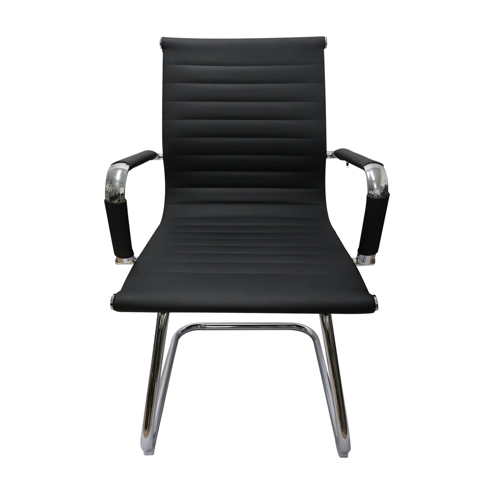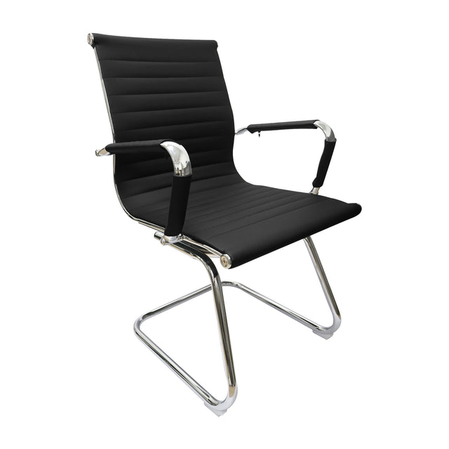 Descubre la silla de oficina Esterilla Fija, perfecta para salas de reuniones y oficinas modernas. Su diseño elegante combina un resistente armazón de metal cromado con un tapizado de ecocuero de alta calidad. Los apoyabrazos fijos con protector de ecocuero brindan un soporte cómodo, mientras su base metálica cromada garantiza estabilidad y durabilidad. Ideal para usuarios que buscan una opción funcional con un estilo sofisticado. Fácil de ensamblar en solo 30 minutos, soporta hasta 110 kg. Mejora tu espacio de trabajo con esta silla contemporánea de alta resistencia.
