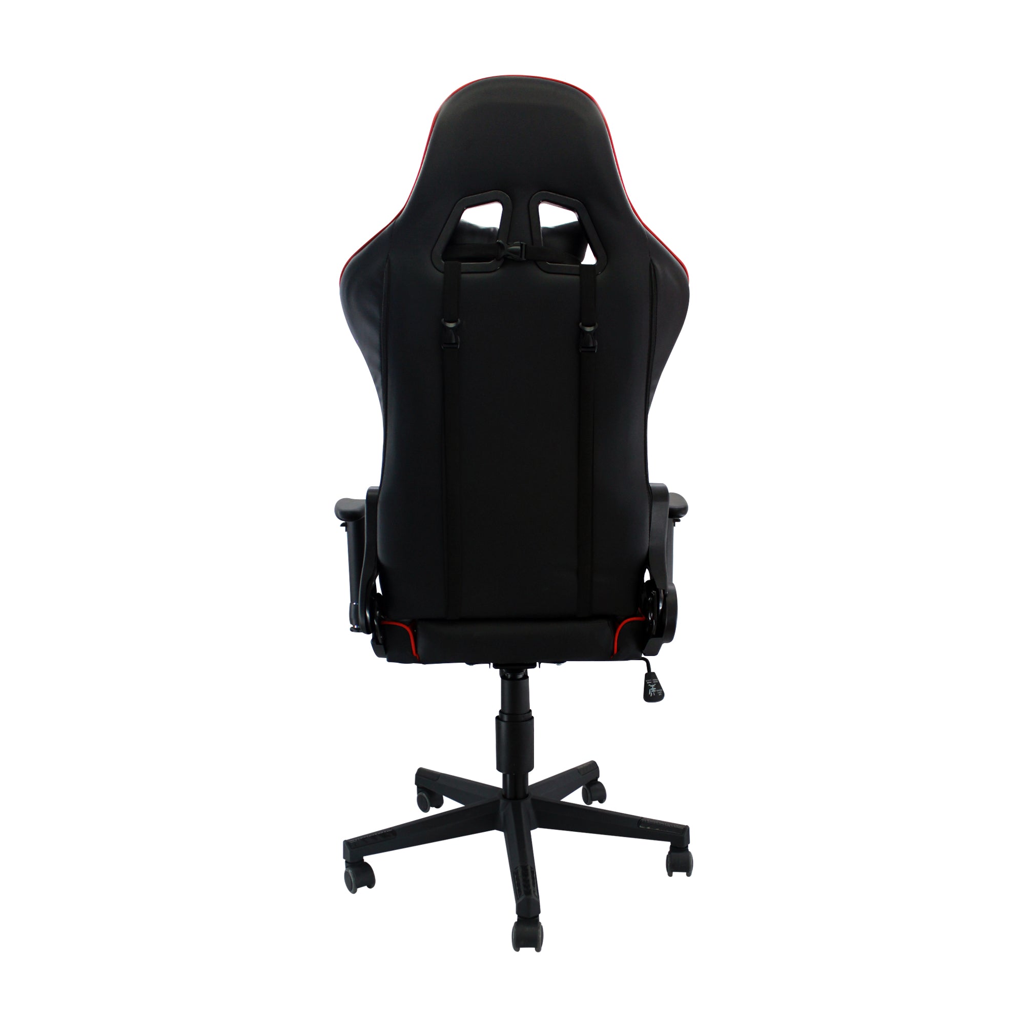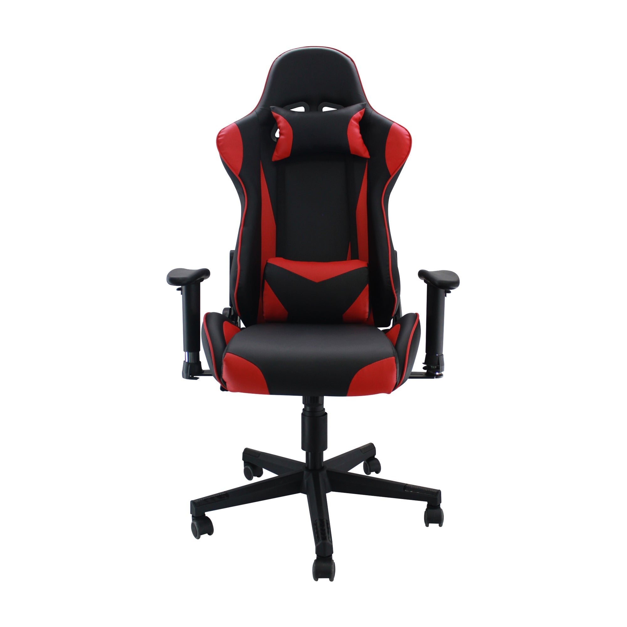 Silla Gamer F-16, hecha en PVC Negro (Es sinónimo de cloruro de polivinilo y es el tercer polímero plástico sintético más producido en el mundo), tiene mecanismo de bloqueo y regulación de graduación de altura a gas (nitrógeno comprimido), su asiento y respaldo es en espuma inyectada, tapizada en cuero de PU color negro a prueba de polvo, su estructura es de plástico y tiene ruedas de PU color gris que no rallan el piso.