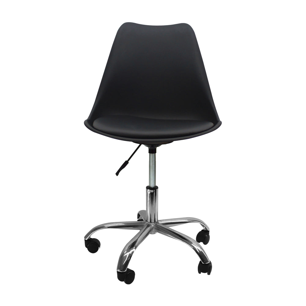 Esta silla va bien en espacios interiores de tu casa, como: habitación u oficina. Fabricada en polipropileno inyectado de gran resistencia con asiento tapizado (eco cuero) y base cromada tipo estrella de 5 puntas.