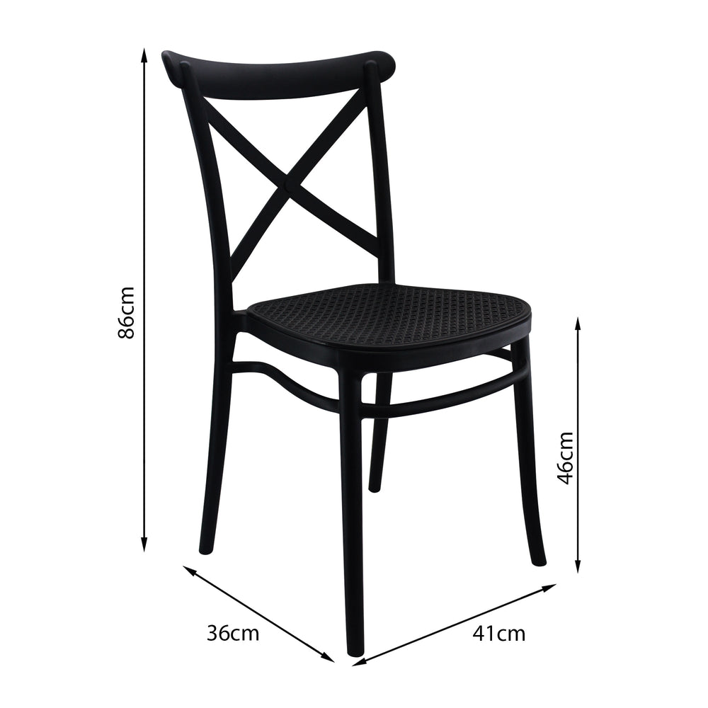 Silla PLATS, tiene un estilo Ratán, clásico, su diseño es moderno e innovador, su estructura está hecha en polipropileno inyectado, su espaldar y asiento están hechos en ratán sintético como simulando de paja hexagonal. Tiene protección con filtro UV para preservarla de la luz y el agua, de esta manera, podrás ubicarla en el lugar de tu preferencia, ya que es apta para interiores y exteriores.